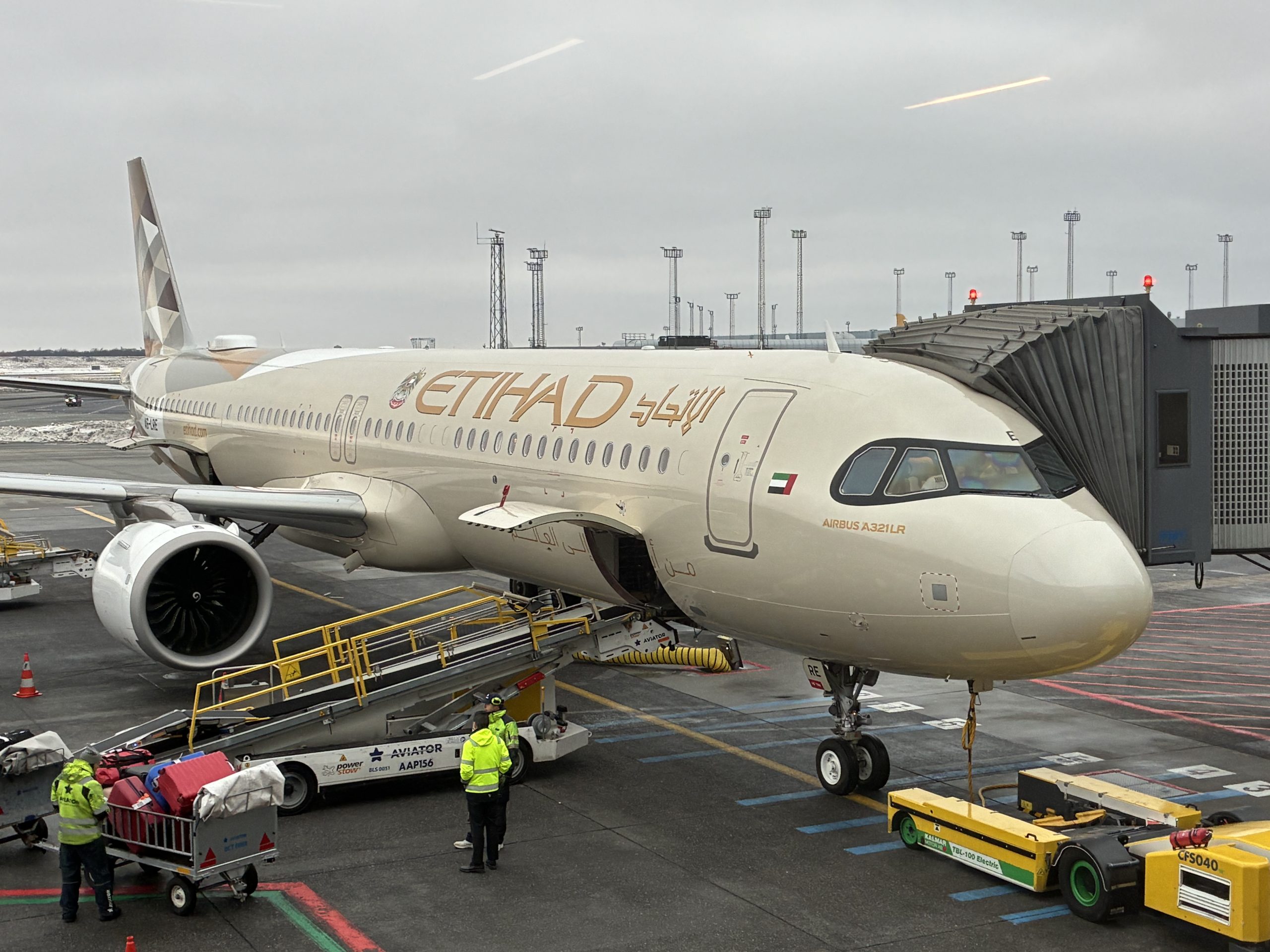Airbus A321LR fra Etihad Airways ved gaten i Københavns Lufthavn. (Foto: Matthias Wagner)