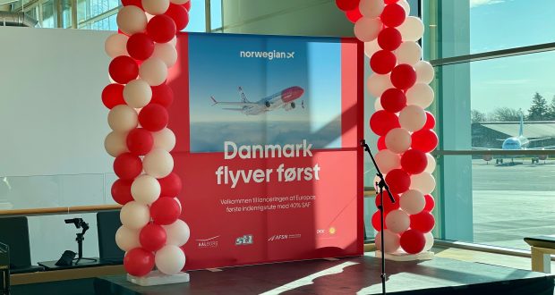 Norwegian lancerer sammen med Aalborg Lufthavn og støttet af den danske stat den første indenrigsrute i Europa med en permanent iblanding af 40 procent SAF.