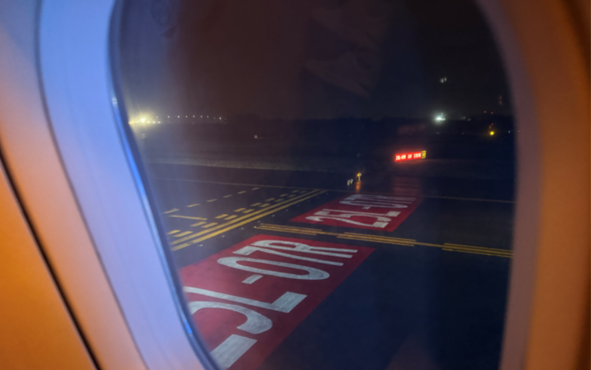Udsigt fra vinduessæde 1F i A320neo-flyet ved hændelsen i Bruxelles. (Privatfoto)